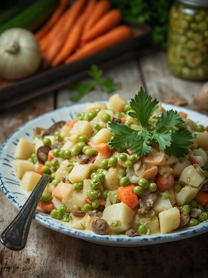 Постный салат Оливье с грибами: веганский рецепт без мяса и яиц пошагово