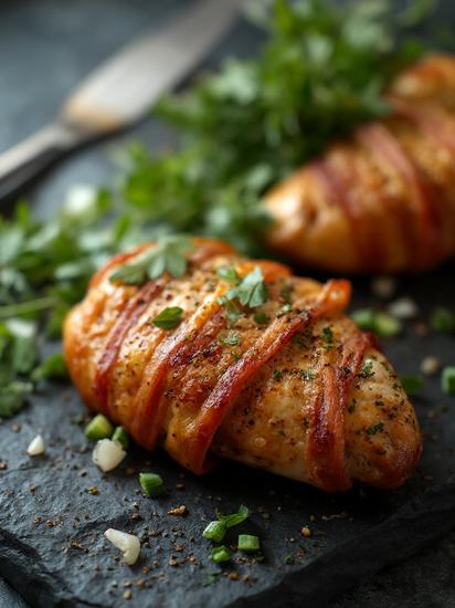 Праздничная куриная грудка в беконе запеченная в духовке: вкусный рецепт с фото