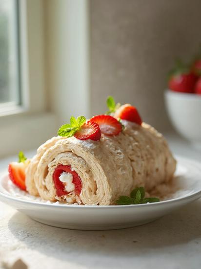 Продолжайте прокатывать тесто, с каждым разом уменьшая толщину раскатки, получая все более тонкий и длинный лист теста.