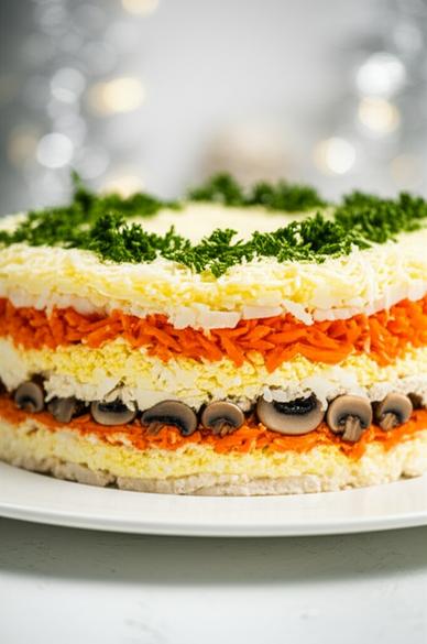 - 4 слой: тертая морковь.